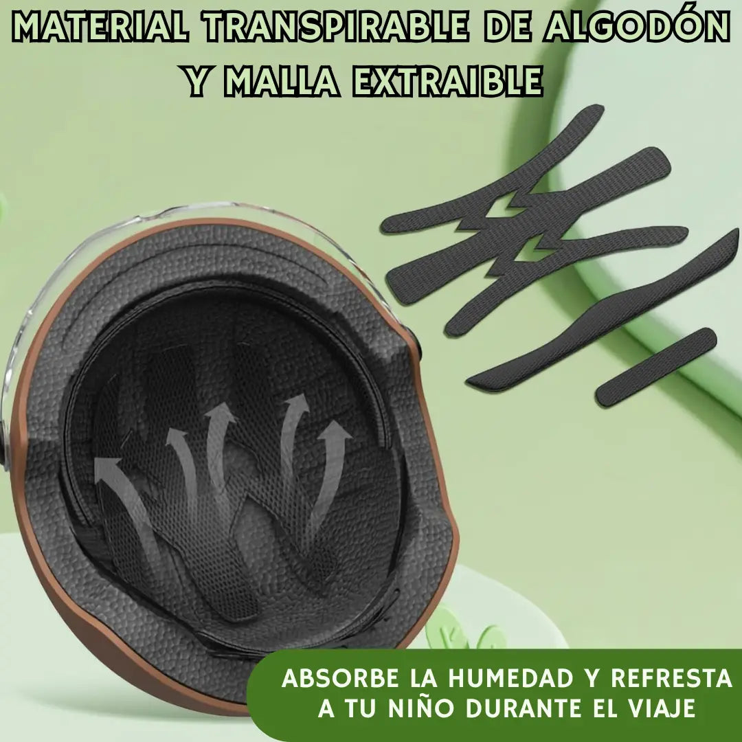 Gracias a su moldura ligera integrada, este casco reduce la presión en la columna cervical de tu pequeño, permitiendo que Lo uso durante horas sin incomodidades. ¡Perfecto para largas aventuras!